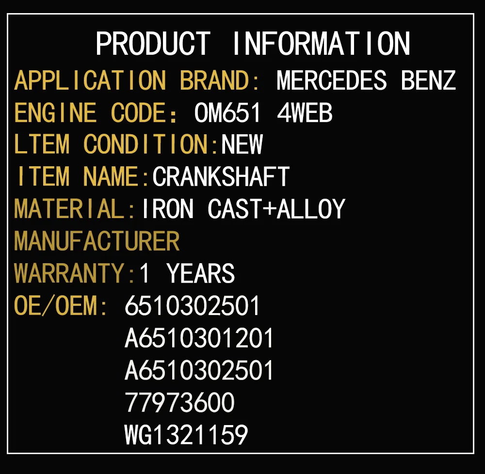OM651 Diesel 2.1L 4 Web Engine Crankshaft Fits For Mercedes-Benz C-Klasse CLS GLK-Klasse SLC Sprinter Viano Model Crankshafts