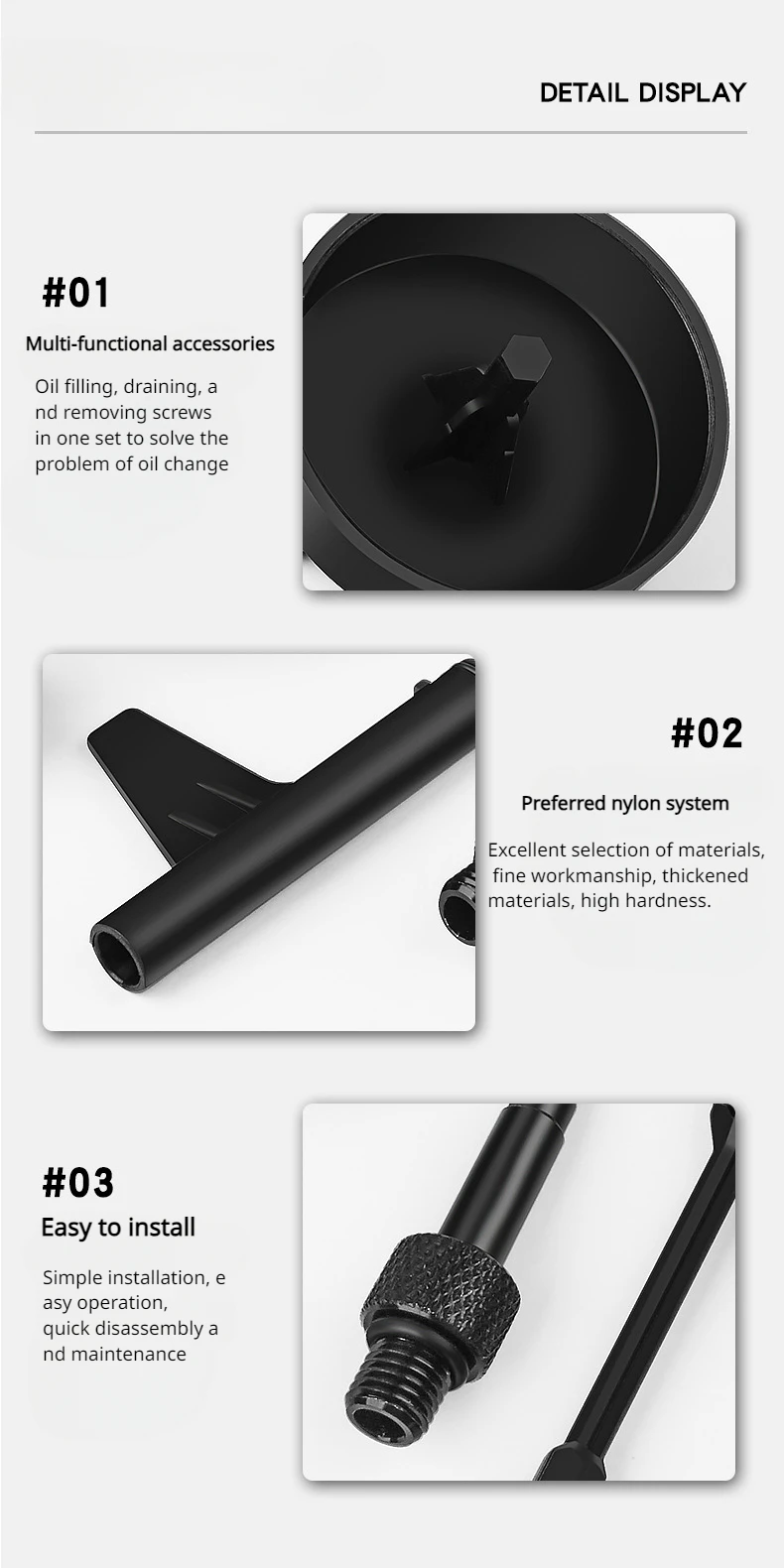 2.Draining wrench tool is wide and smooth tubing for convenient draining oil, adjust the position and drain the oil thoroughly.